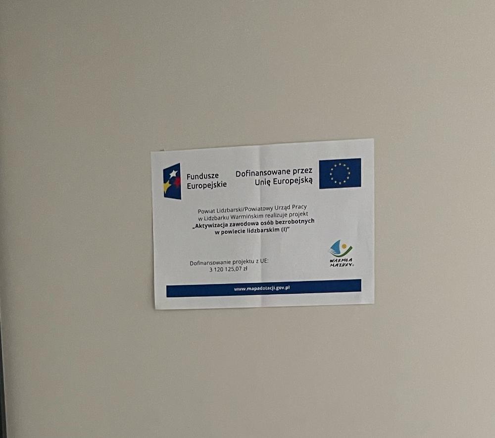 Powiatowy Urząd Pracy w Lidzbarku Warmińskim realizuje projekt „Aktywizacja zawodowa osób bezrobotnych w powiecie lidzbarskim (I)" w ramach programu regionalnego Fundusze Europejskie dla Warmii i Mazur 2021 – 2027.